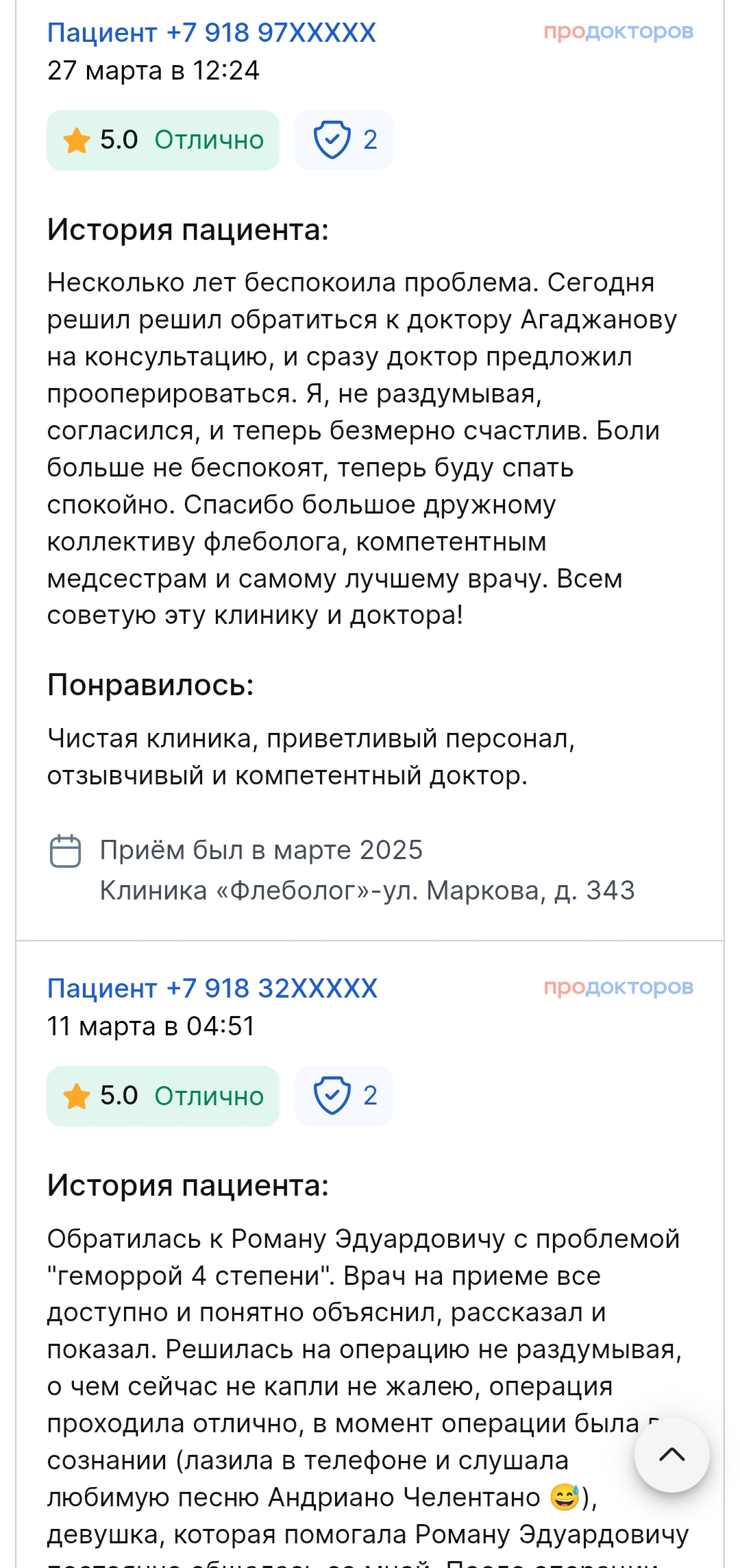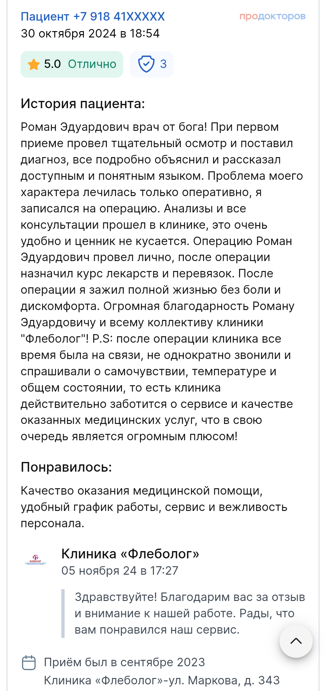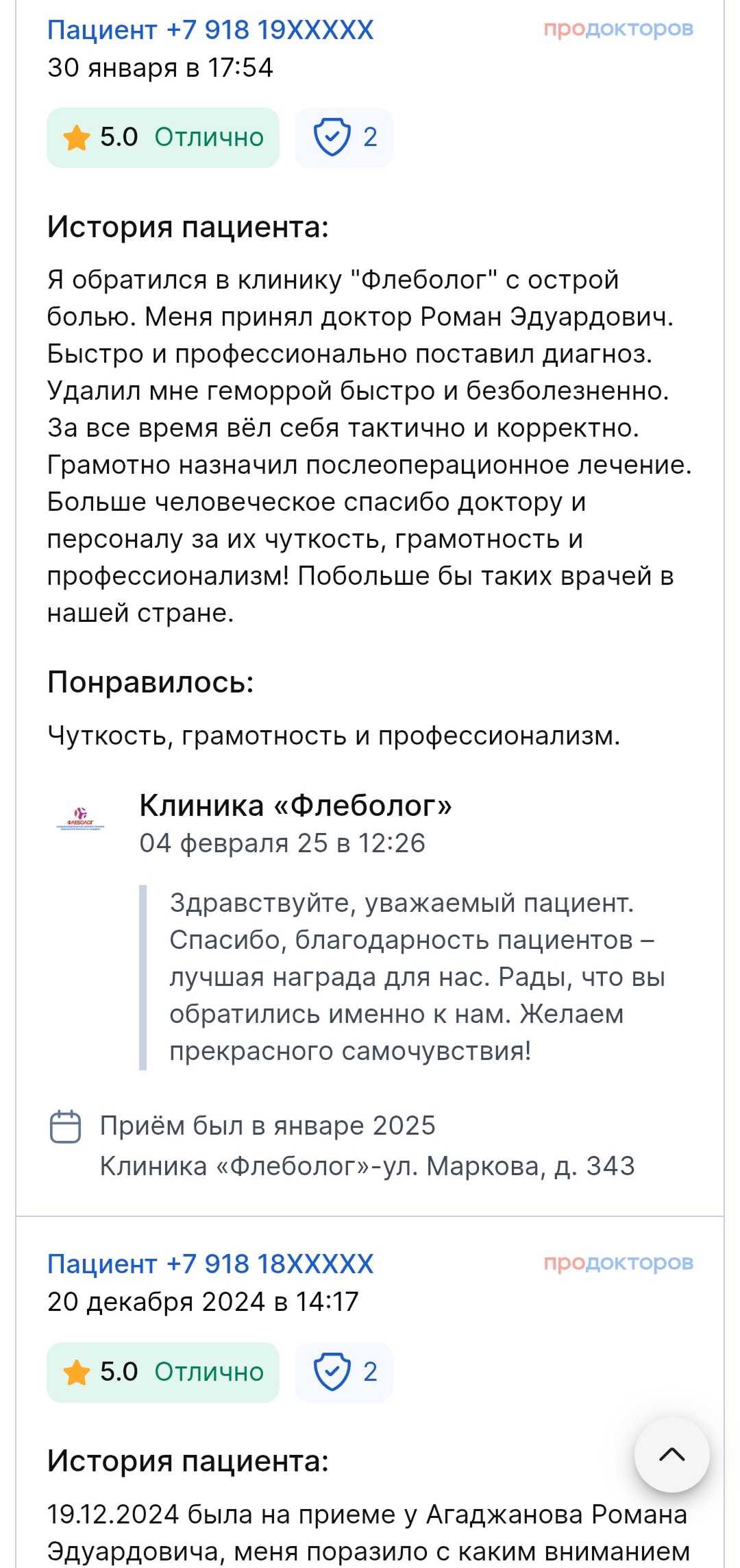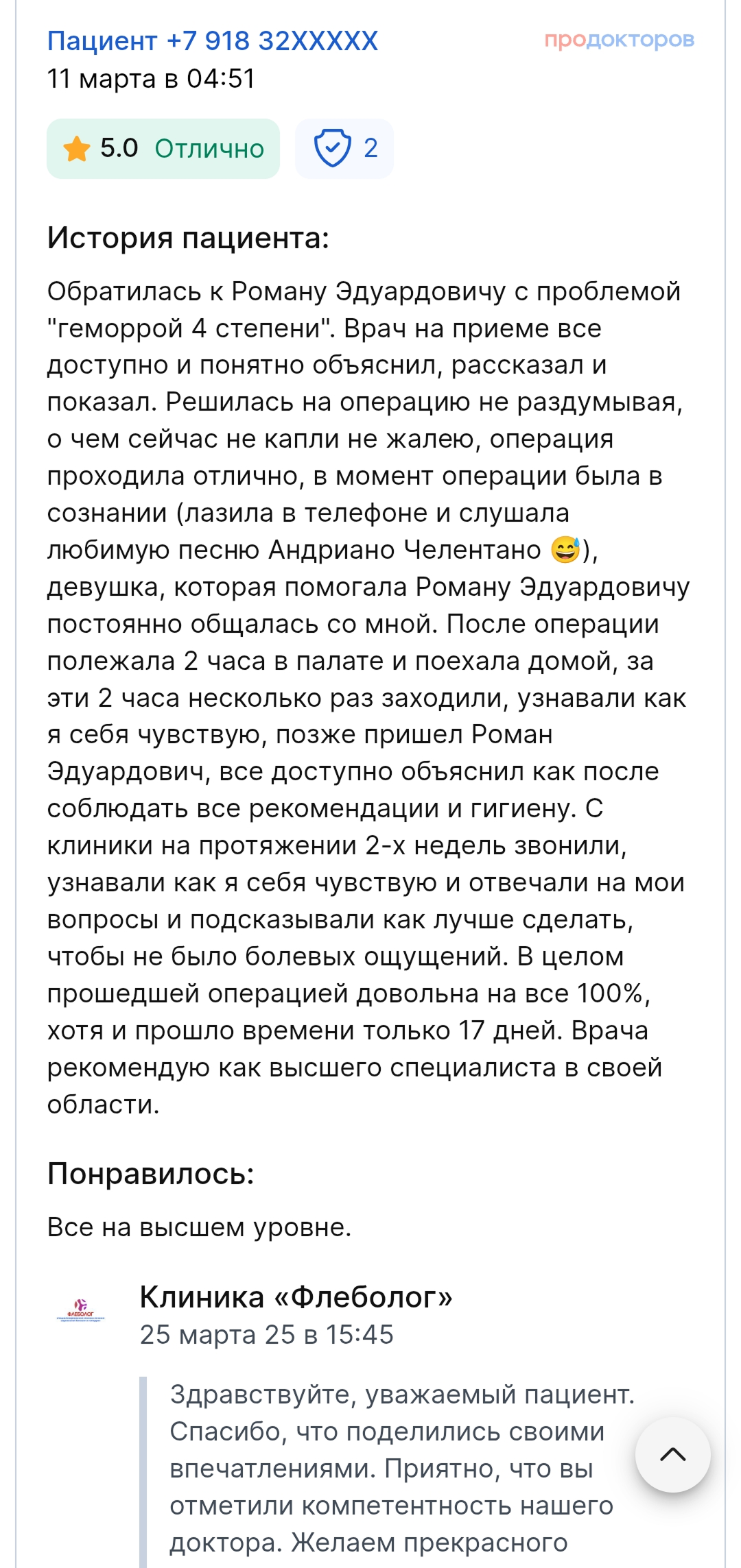 Все манипуляции безболезненны, и пациент покидает клинику в день обращения и проведения процедур (без госпитализации). Ведение больного до полного выздоровления (доктор всегда на связи). Результат — улучшение качества жизни и возвращение в неё комфорта.